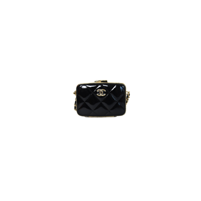 Pre-owned Small Box With Chain Patent Leather Clutch Black In Default Title
