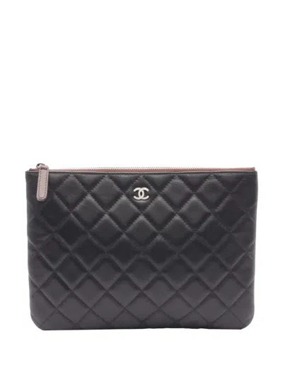 Pre-owned 2012 Small Cc Quilted Lambskin Classic Zipped Clutch Bag In 黑色