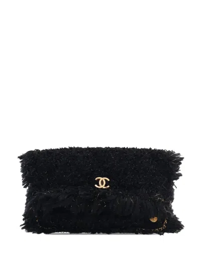 Pre-owned 2021-2025 Cc Tweed Houndstooth Clutch On Chain Crossbody Bag In Purple