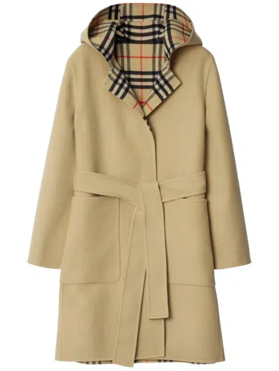 Vintage Check Hooded Belted Reversible Coat In Neutral