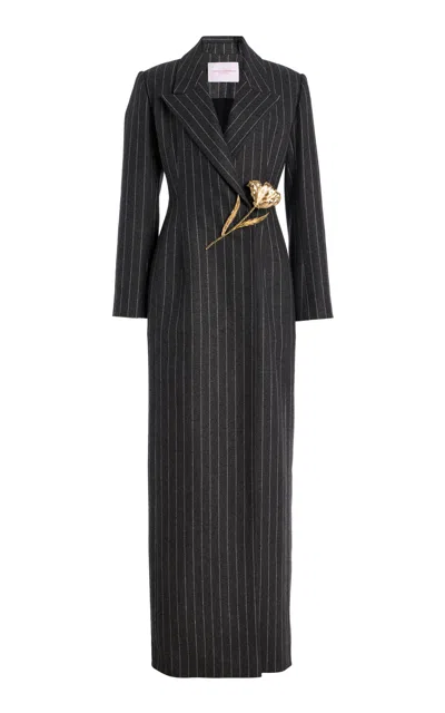 Double-breasted Wool Coat With Bejeweled Buttons In Black