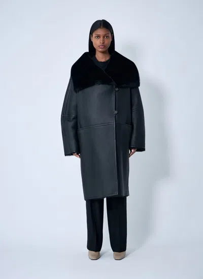 Boedic Long Down Coat With Detachable Shearling Trim In Black
