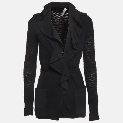 Pre-owned Black Knit Ruffled Collar Short Coat S