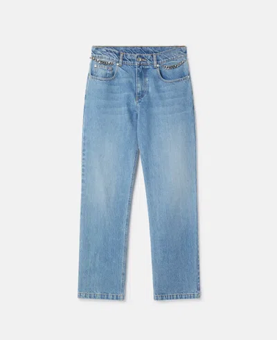 Falabella Chain Light Wash Cropped Jeans In Mid Blue