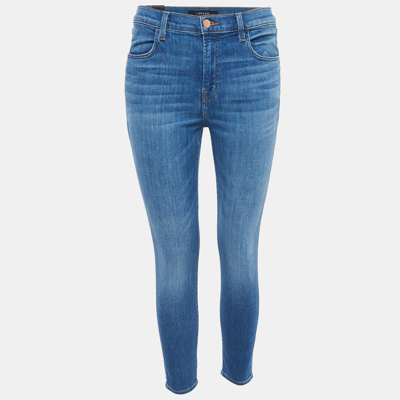 Pre-owned Blue Washed Denim High Rise Crop Jeans M Waist 29"