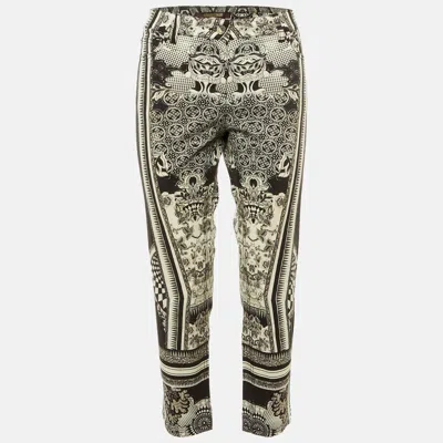 Pre-owned Black Floral Print Denim Cropped Jeans L/waist 34"