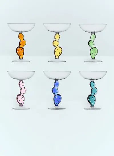 Set Of Six Desert Plants Cactus Champagne Bowls In Multicolour