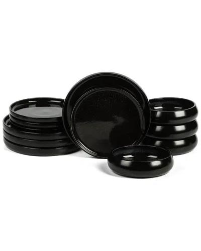 Lagoon Stoneware 12-piece Dinnerware Set In Black