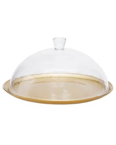 Black Alabaster 13in Cake Plate With Stem And Gold Trim