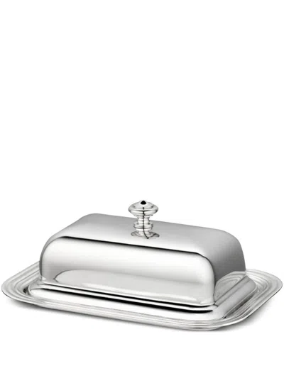 Gio Platinum Metallic Geometric-pattern Bone-china Bowl 11cm In White