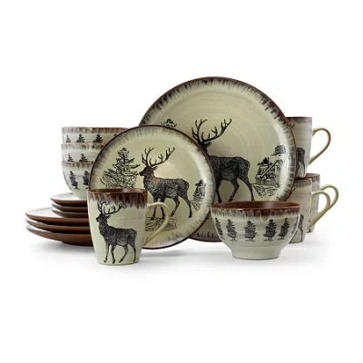 Majestic Elk 16 Piece Luxurious Stoneware Dinnerware With Complete Setting For 4 In Multi