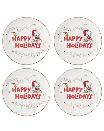 Set Of 4 Snoopy Christmas Accent Plates In Ivory