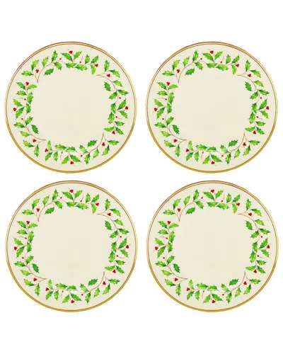 Set Of 4 Holiday Dinnerware Dinner Plates In White