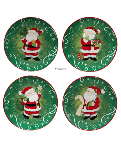 Holiday Magic Santa Set Of 4 Dessert Plates In Green