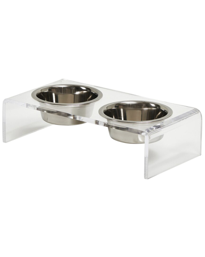 Large Clear Double Bowl Pet Feeder With Metallic Bowls In Silver