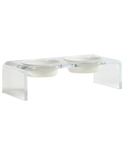 Small Clear Double Bowl Pet Feeder With White Bowls