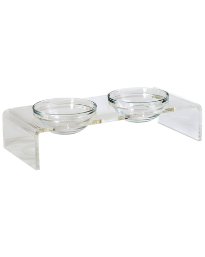 Clear Double Bowl Pet Feeder With Glass Bowls
