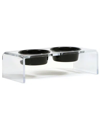 Small Clear Double Bowl Pet Feeder, 3.5 Cup Black Bowls