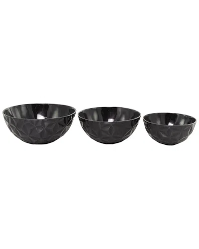 Set Of 3 Black Aluminum Faceted Decorative Bowl