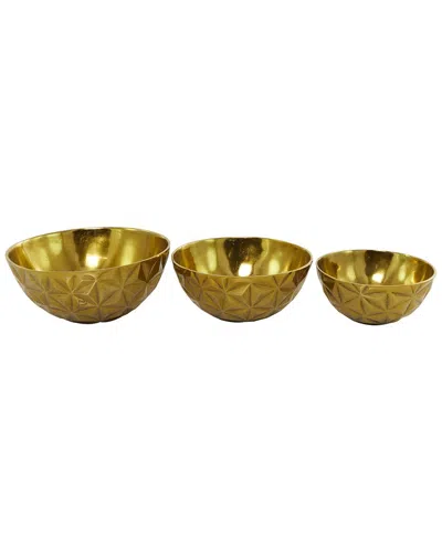 Set Of 3 Gold Aluminum Faceted Decorative Bowl