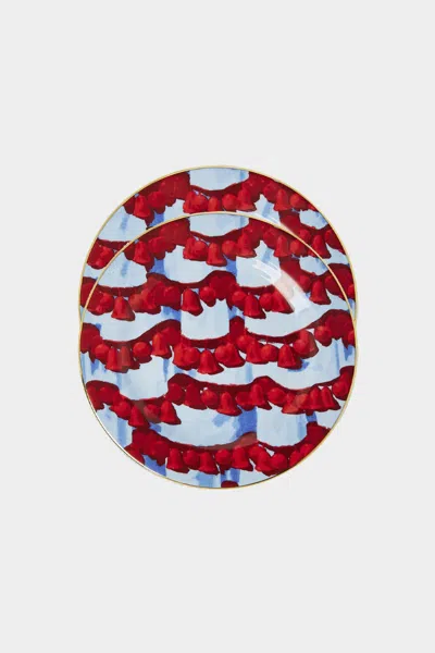 Dessert Plate Set Of 2 In Cherries Avorio In Red