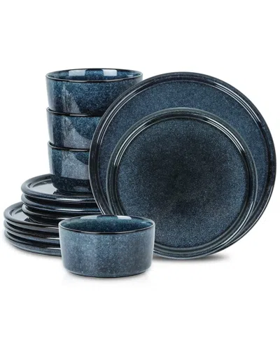 Eden 12pc Dinnerware Set Dark Blue In Black