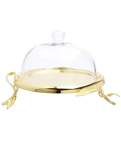 10.5in Cake Plate With Glass Dome In Gold