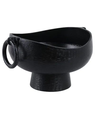 16x13 Metal Pedestal Bowl With Ring Handles In Black