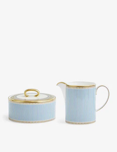 Helia Bone China Sugar Bowl And Creamer Set Of Two In Green