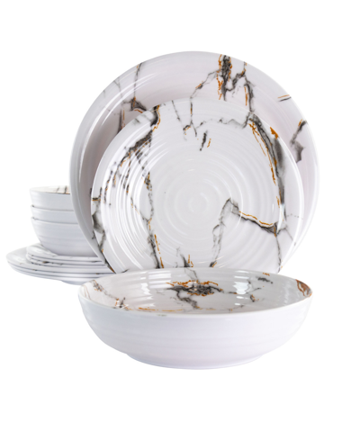 Rippled Tides 12 Piece Lightweight Melamine Dinnerware Set In Multi