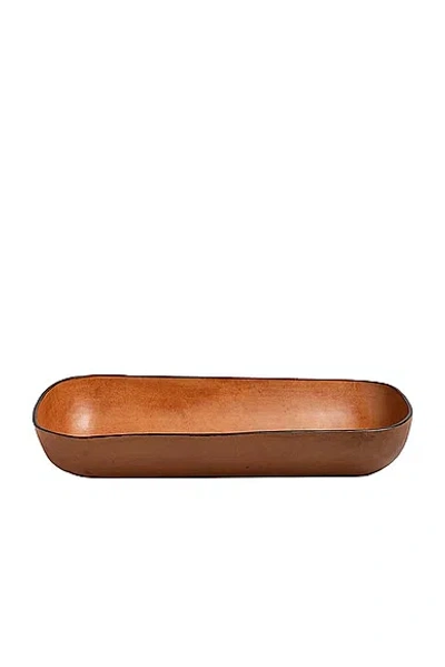 Molded Leather Oversized Oval Bowl In Cognac