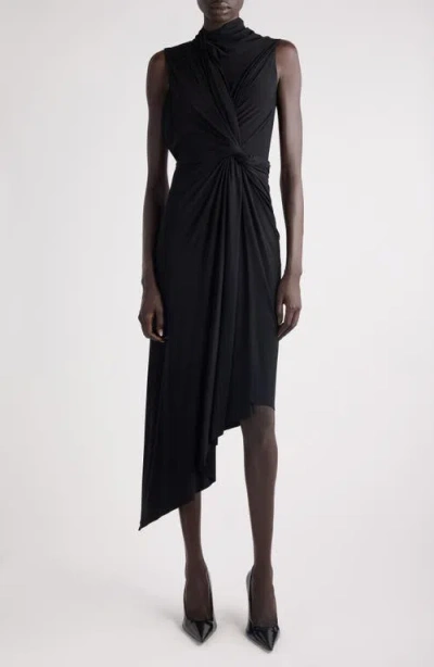 Women Stretch Fabric Long Asymmetrical Dress In Black