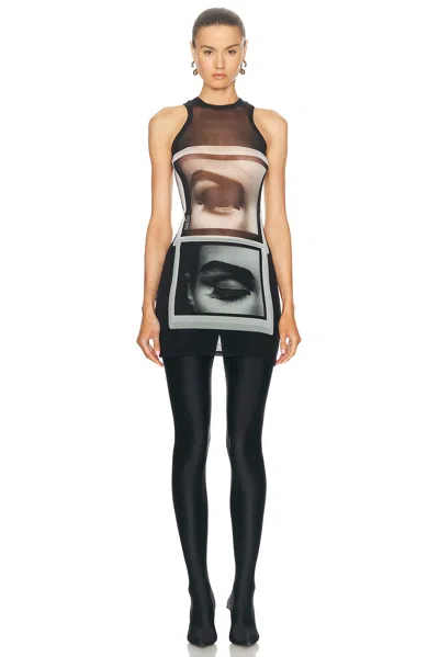 Mini Tanktop Dress Eyes And Lips In Black