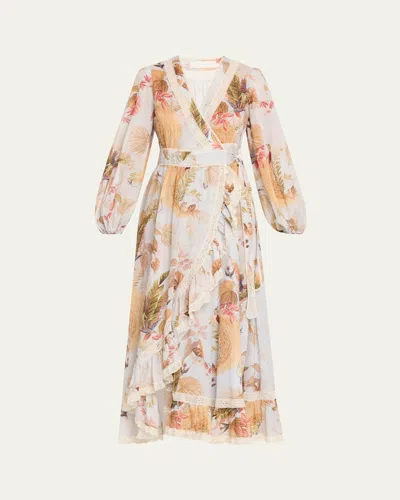Ascension Frilled Long-sleeve Wrap Dress In Animal Print