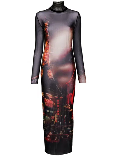 Toteme Split Sleeve Semi-sheer Knit Maxi Dress In Black