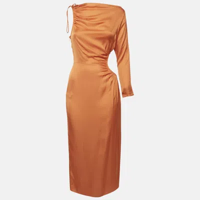 Pre-owned Orange Viscose Blend Cut-out Detail Midi Dress S