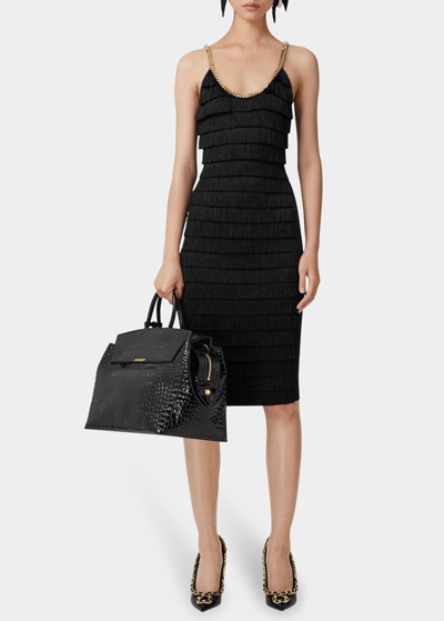 Melina Chain Trim Fringed Cocktail Dress In Black