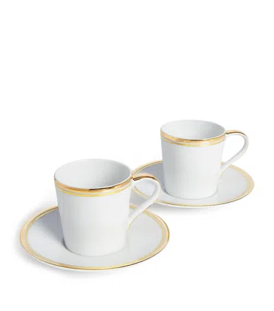 Set Of 2 Bone China Nastri Bordeaux Teacups And Saucers In Red
