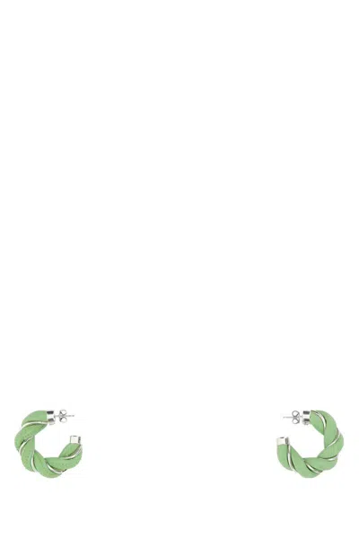 Pastel Green Nappa Leather And 925 Silver Earrings In 3830