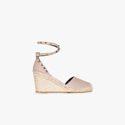 Neutrals Neutral Rockstud 85 Leather Wedge Espadrilles
