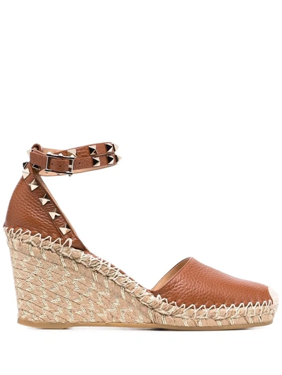 Double Rockstud Wedge Espadrilles In Braun