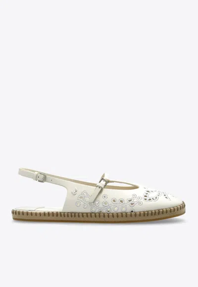 Amiee Sangallo Embroidered Leather Espadrilles In White