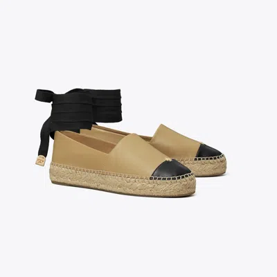 Cut-out Logo Raffia & Leather Espadrille In Multi