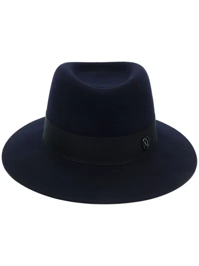 Womens Lacey Chain-embellished Felt Fedora Navy In Blue
