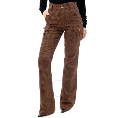 Chloe Ladies In Houndstooth Cotton Wool High-rise Flared Trousers In Orange/green