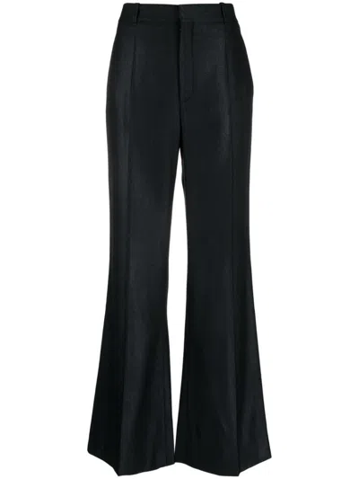Wool And Silk Blend Flared Leg Trousers In Black