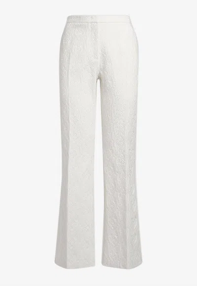 Flared Paisley Jacquard Pants In White