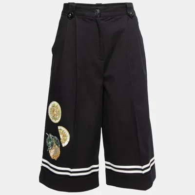 Pre-owned Black Cotton Twill Embellished Embroidered Culottes M