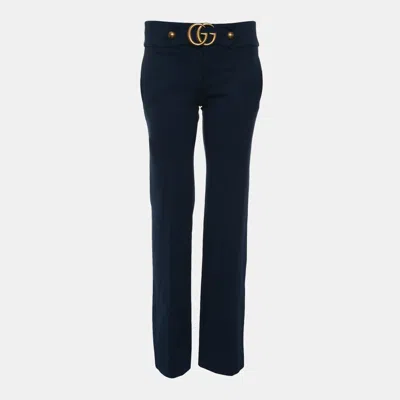 Pre-owned Navy Blue Wool Flared Trousers M