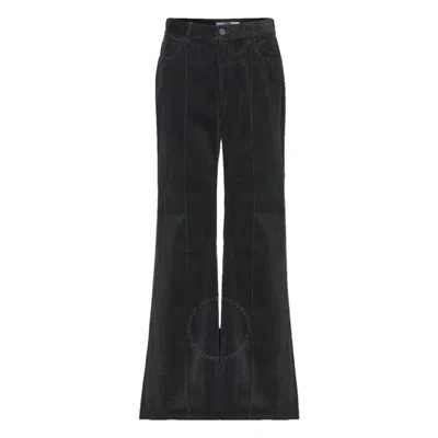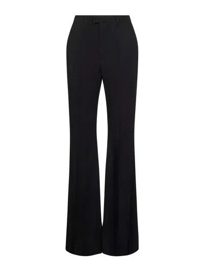 Ladies Black Ribbed-panel Flared Wool Trousers